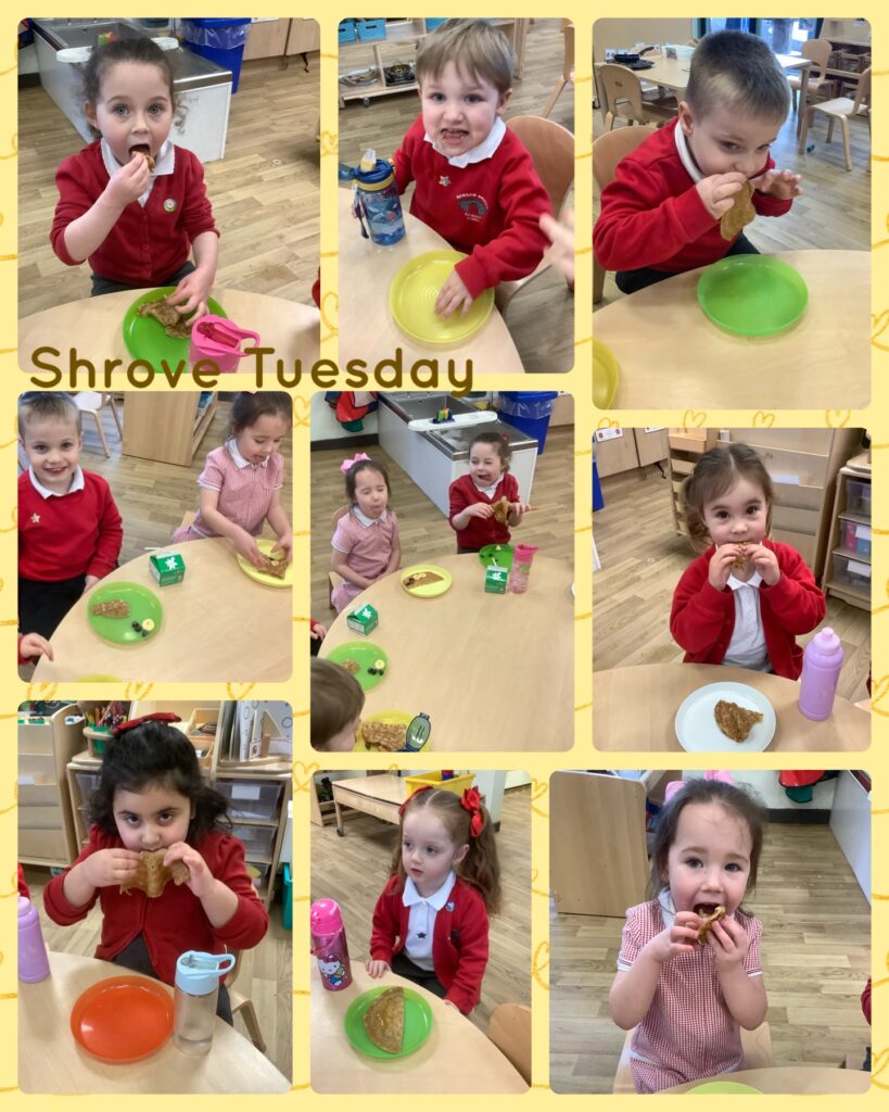 On Tuesday, it was Shrove Tuesday. We tasted pancakes and talked about what we liked for pancake toppings!