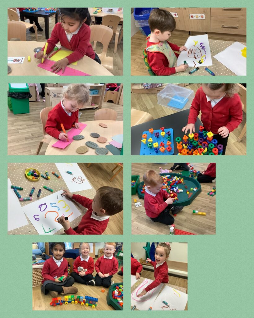 We continue to strengthen our finger muscles and practise holding our crayons and pencils. Please encourage your child to mark-make at home, drawing pictures, painting, colouring and chalking. The skill we are working on is holding a pencil in the tripod grasp….