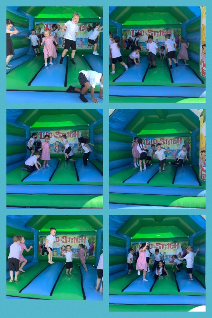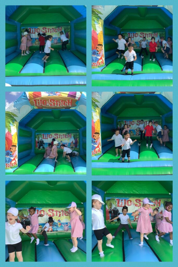 The nursery have had a super week this week. We have set up the role play area into an ice cream parlour – lovely delicious ice cream! They have bee serving pretend ice creams and lollies on these summer days we have had. The children were excited on Monday when the bouncy castle arrived and they all got the opportunity to have a bounce! There was lots of giggles! Later this week, the children arrived in all different coloured t-shirts ready for their Sports Day. It was a lovely day for the children and the children really enjoyed their activities. Thank you for the support and cheering on the little ones!