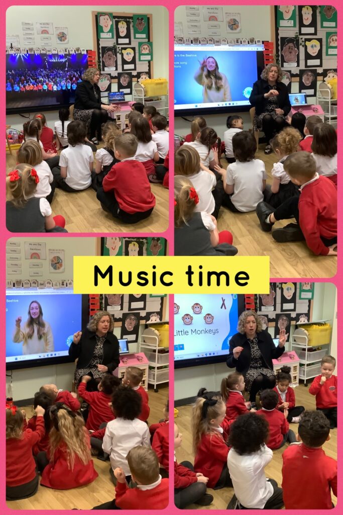 Happy Reading has been the focus this week across the school. The children have listened to their favourite stories and had the opportunity to talk about their stories. In Maths this week, the children were introduced to 6 and 7, still developing the understanding of subitising and composition. In music, the children learned to make different sounds using their mouth, watching a video showing their mouth can be an instrument too. In writing, the children followed a dictated sentence and used their phonic knowledge to develop their words – Excellent writing!
