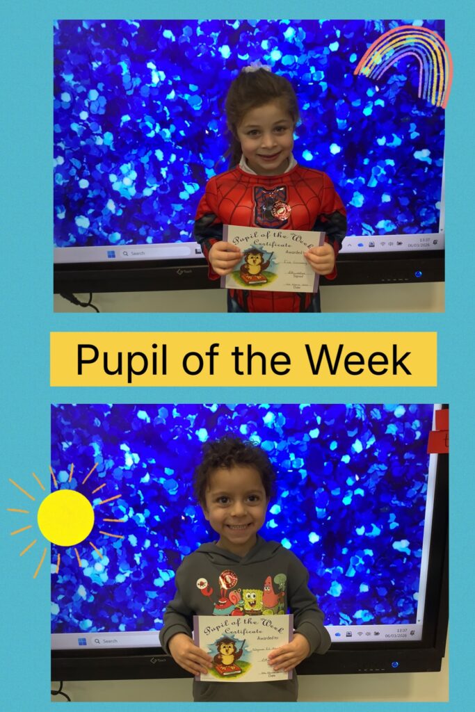 In Sunshine group, Pupil of the Week goes to Najam, for developing his communication skills.