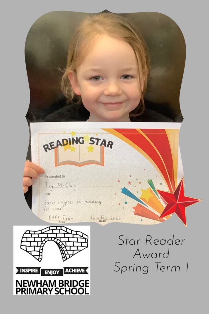 Well Done to Ivy for showing great progress with her reading this term.
