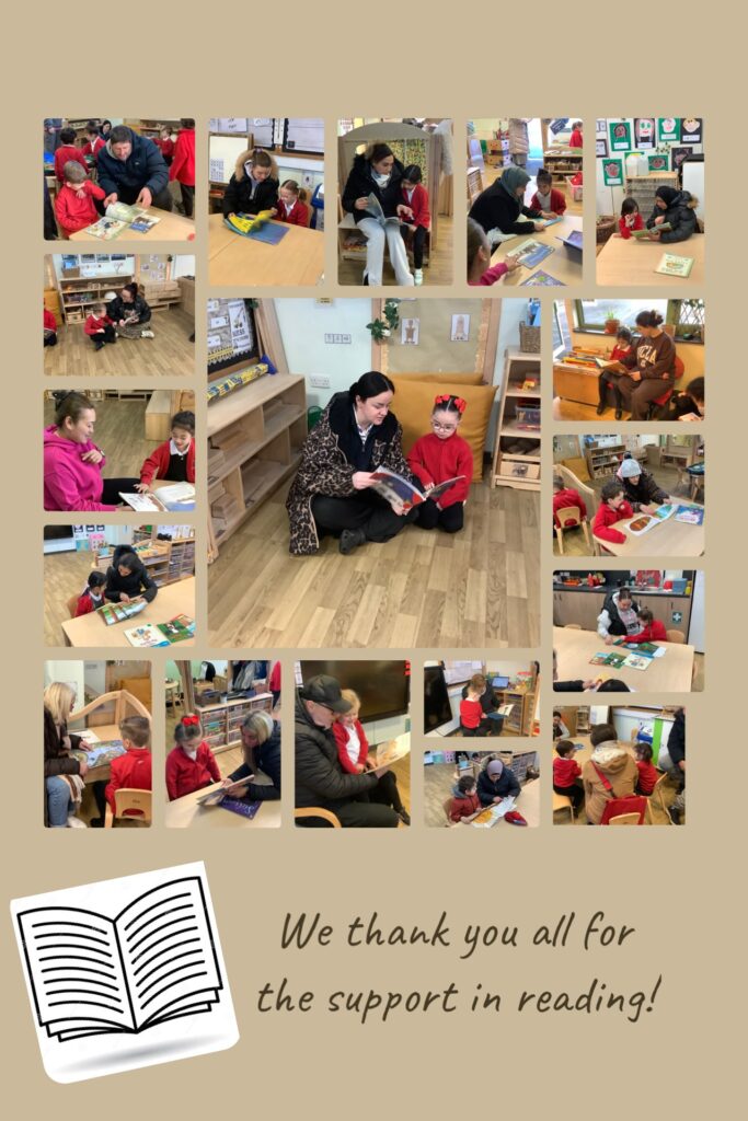 Every Monday, parents are invited to join their child on a morning to come and read a book. When the doors open at 8.40am, parents can pop into reception and share a book with their child until doors close at 9.00am.