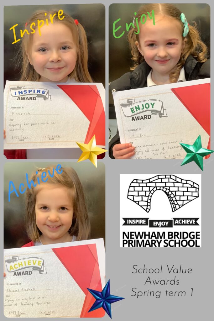 Here are the children who have been chosen for the Spring term 1 Inspire, Enjoy and Achieve awards.