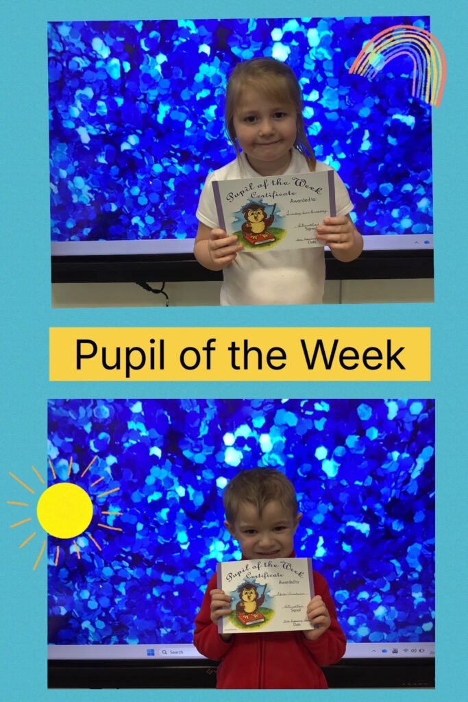 In Rainbow group, Pupil of the Week goes to Lindey-Lou, for super phonics this week, building on her graphemes.
