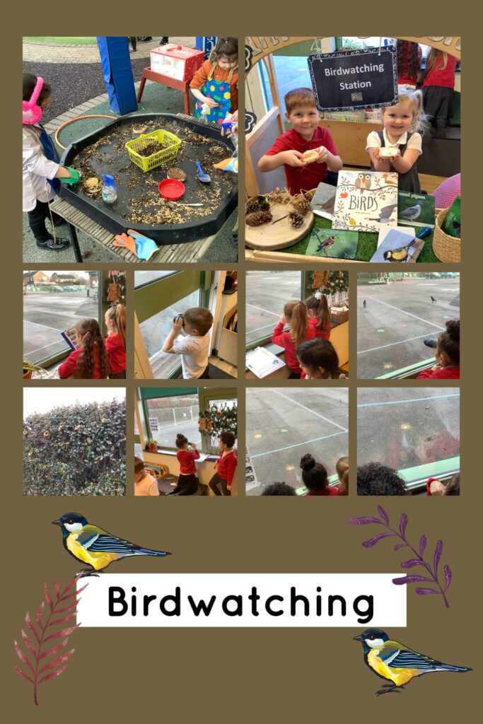 Reception have enjoyed birdwatching this week, as it is RSPB national Big Garden Birdwatching weekend. The children had the chance to use binoculars and spot the local birds around our playground. They made bird mud seed biscuits for the birds and made their own binoculars. In PE, the children developed some dancing skills, following a sequence to ‘Humpty Dumpty’ and learned some good football passing skills. In maths this week, the children understood counting and ordering their numbers using numberblocks.