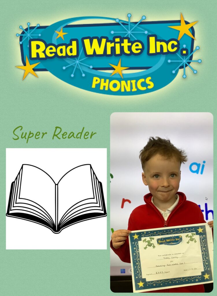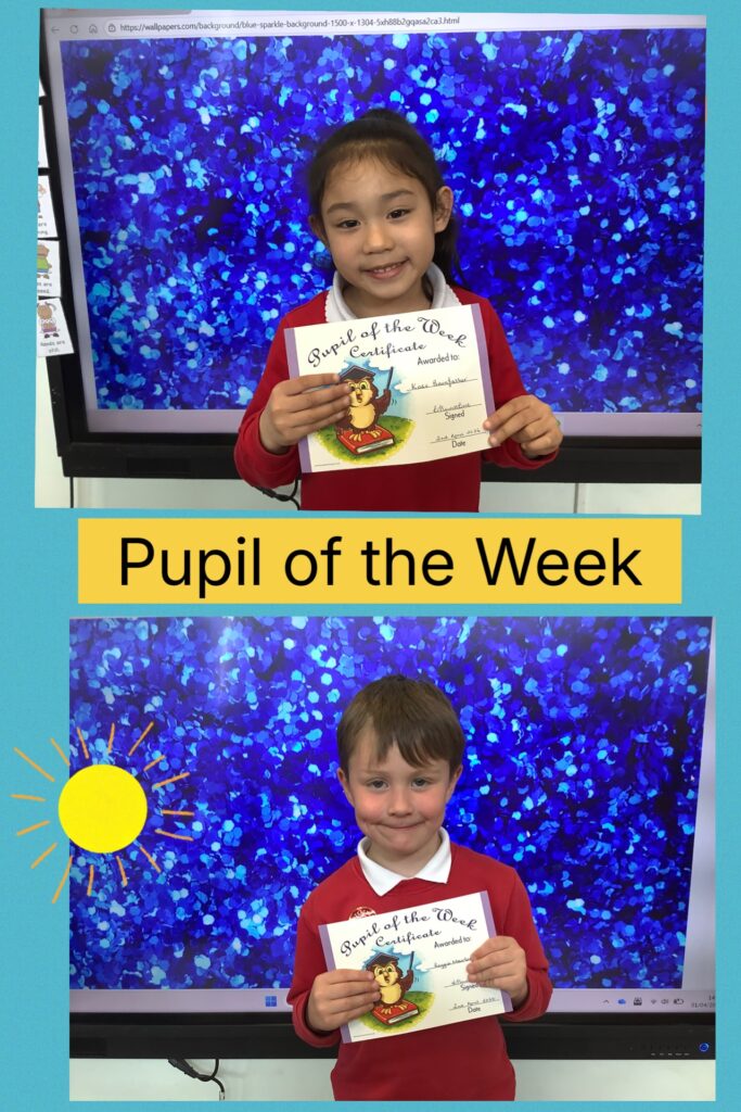 In Rainbow group, Pupil of the Week goes to Kate, for trying her best with her reading, recognising her sounds.