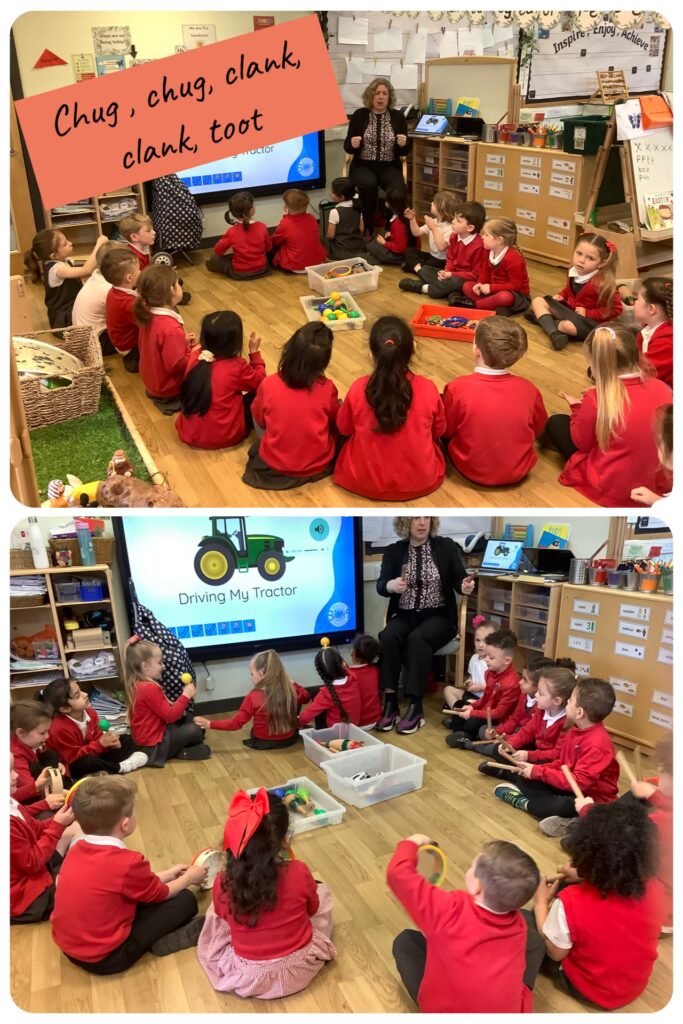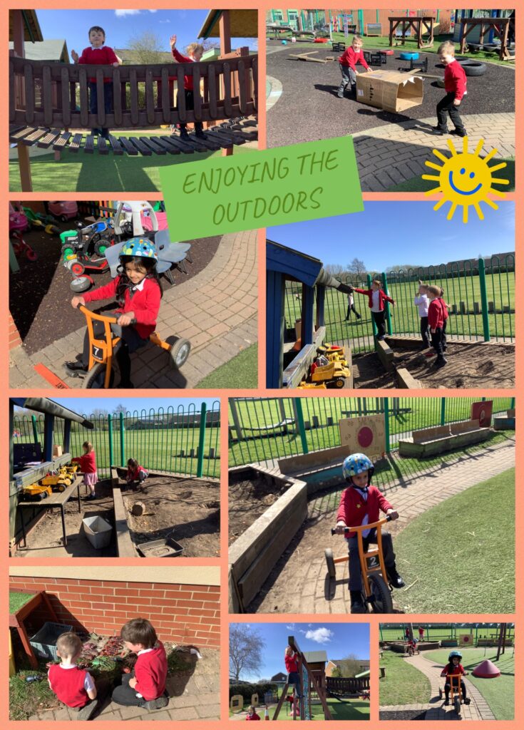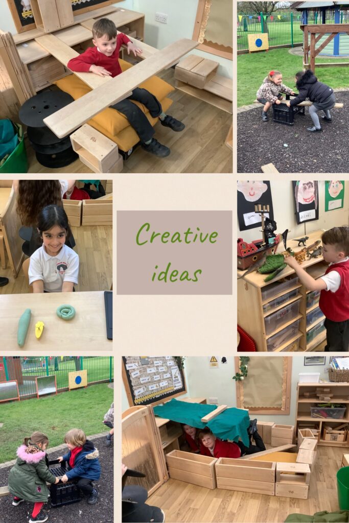 Final week of Spring term and the sunshine appeared. Both indoors and outdoors this week, we saw many amazing ideas that the children wanted to share and they all played lovely in the areas. In music, Mrs Collins and the children sang a ‘Tractor song’, the children loved making sound effects of the tractor with their musical instruments. The children listened to the ‘Easter story’ and made some Easter creations in the writing area and creative area.