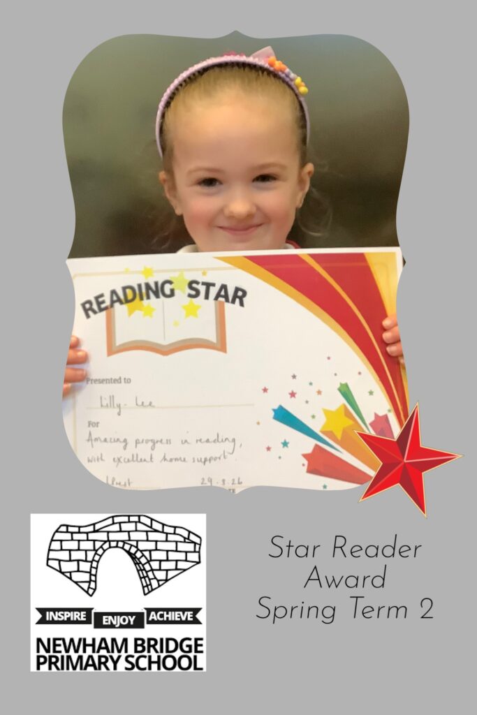 Reading Star award goes to Lilly-Lee for demonstrating amazing progress in her reading with excellent home support.